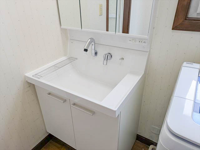 洗面化粧台の設置が完了しました。