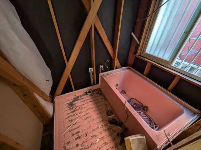 屋内では新たなシステムバスが設置できるように造作工事を進めていきます。