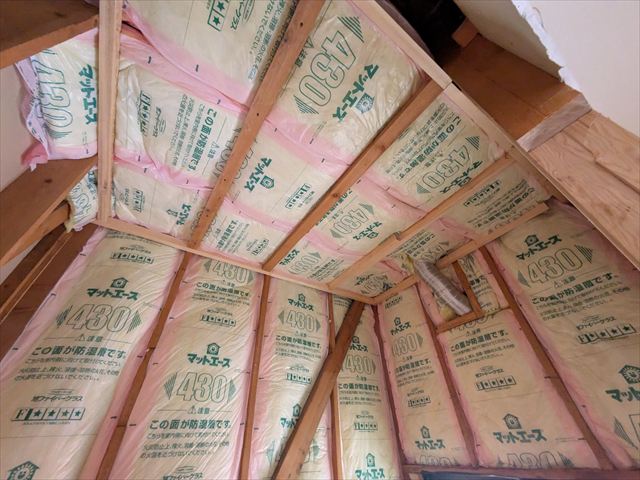天井や外周部の壁にはグラスウールを充填して二段階断熱となっています。