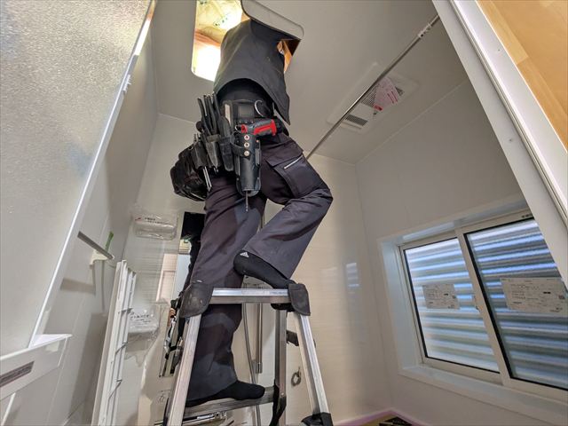システムバスの電気及び水道関連の接続工事が始まっています。