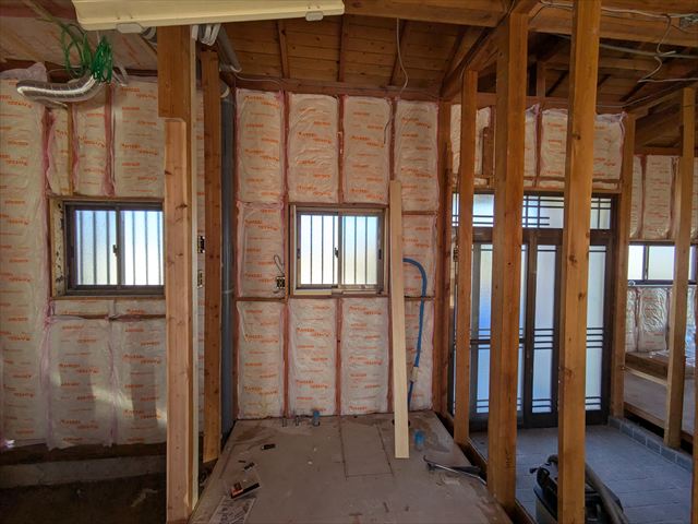 今回は下地から造り直しますので柱の見える状態まで解体していきます。