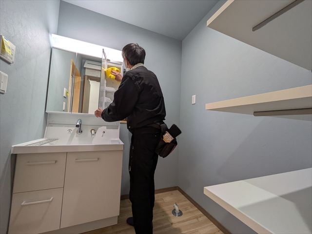 屋内や設備機器、既存の窓まで丁寧に拭き上げていきます。