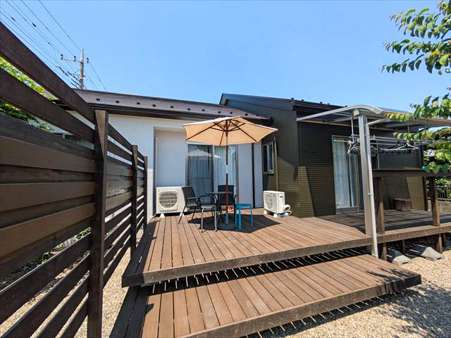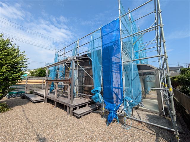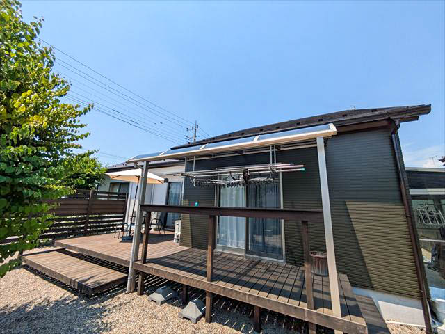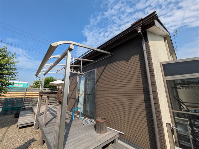 建物全体と同時に外構やウッドデッキも綺麗に塗装した外観リフォームとなります。