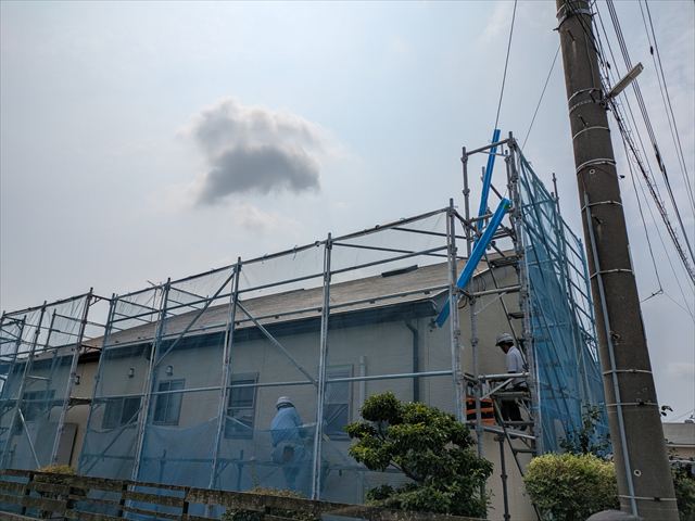 塗膜が飛ばないように養生シートの設置も欠かせません。