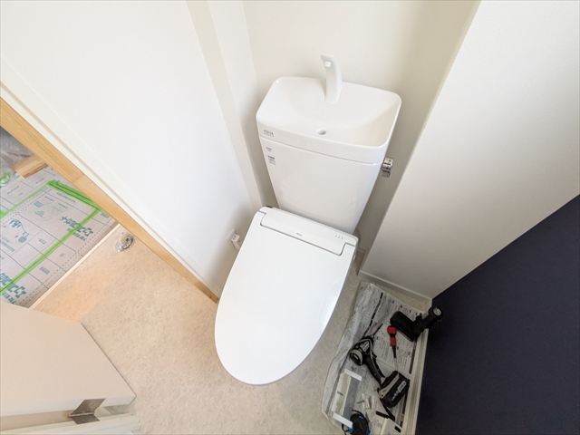壁の中にはタンクが収まって、空間に余裕を待たせています。