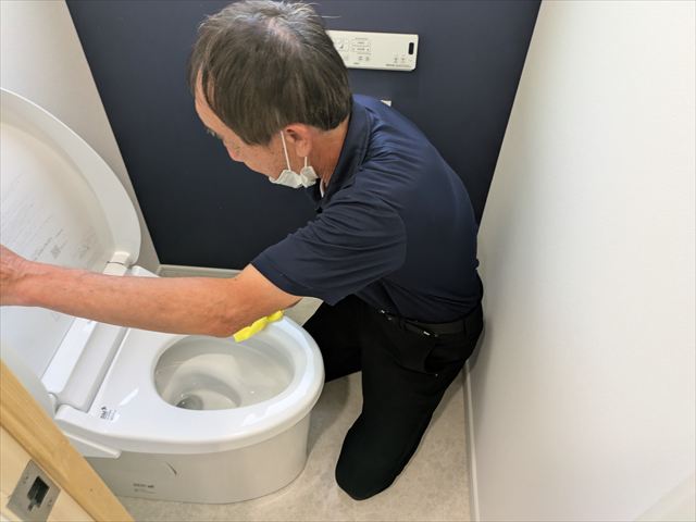 トイレ室全体と窓、搬入経路も丁寧に磨き上げていきます。