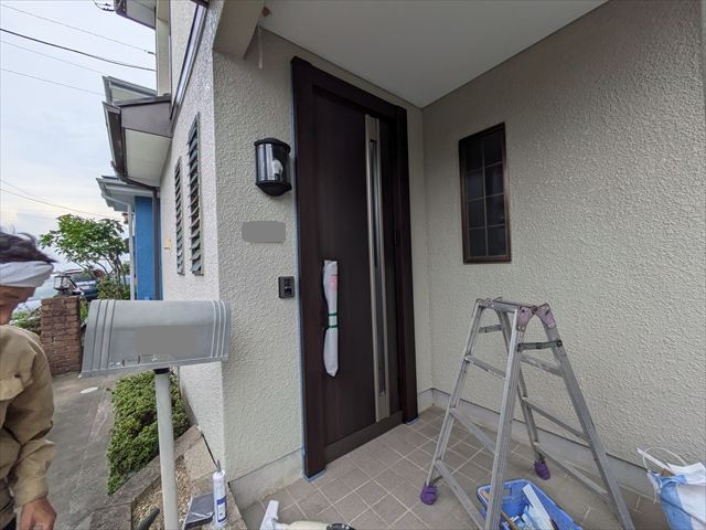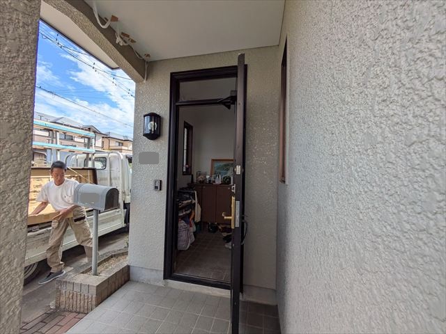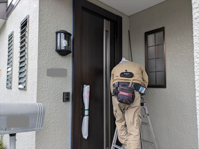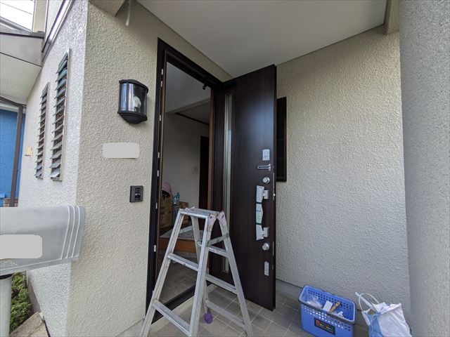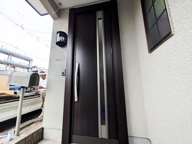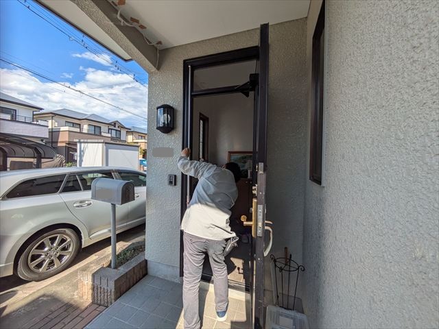 鍵の施錠に困難な状態が続いていた玄関扉を入れ替える計画となります。