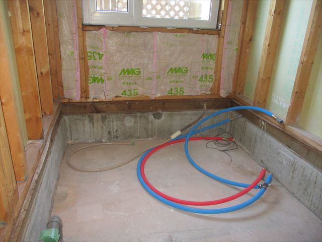 同時に新しいシステムバスの仕様に合わせて断熱材の入れ替えと下地を造っていきます。