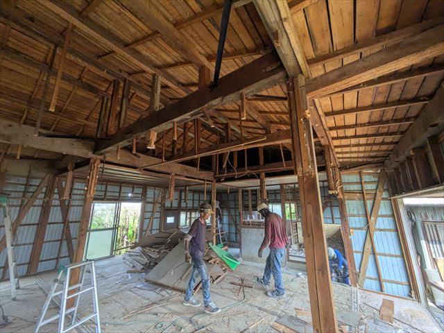 間取りの区画構成の為の補強と柱抜きを行っていきます。