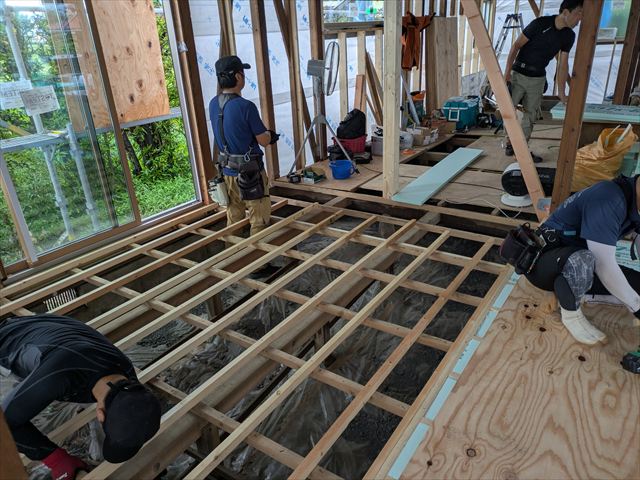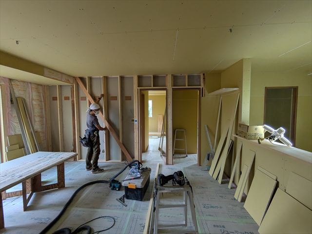 建具枠も設置されて間取りの区画も全容が見えてきました。