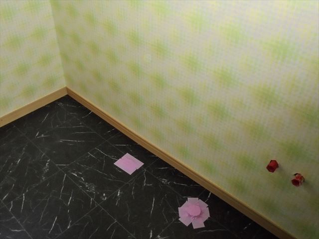 既存のクロスを剥がしてからボードの継ぎ目となる部分にパテ処理を施します。