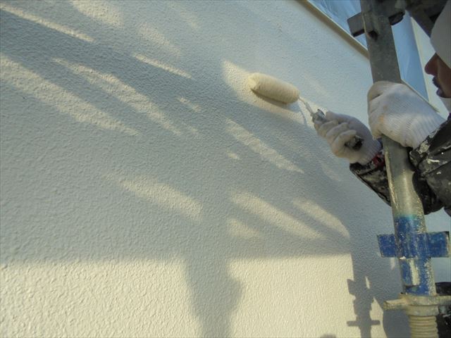 ローラーの届かない場所は刷毛を使って丁寧に仕上げていきます。