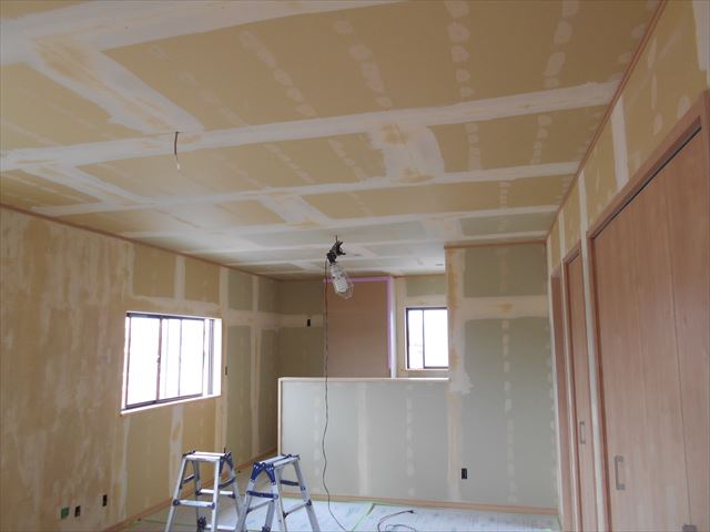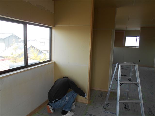 ボードのジョイントや取り合い部分にパテ処理を施します。