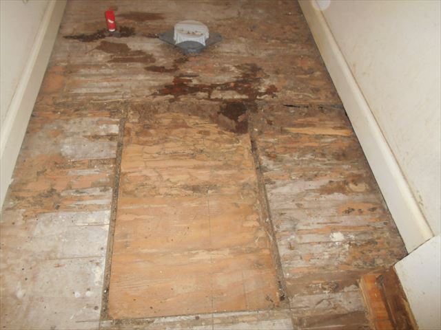 床が抜けそうな状態で歩く事が危険に思われるトイレ空間となっていました。