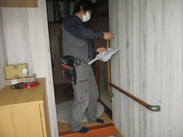 断熱材の充填を行い、省エネ効果を向上させ、既存の不陸を調整しながらボードを張り上げていきます。
