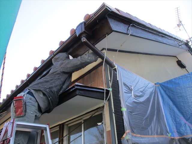 玄関増築に伴って、既存の庇の解体撤去を進めていきます。