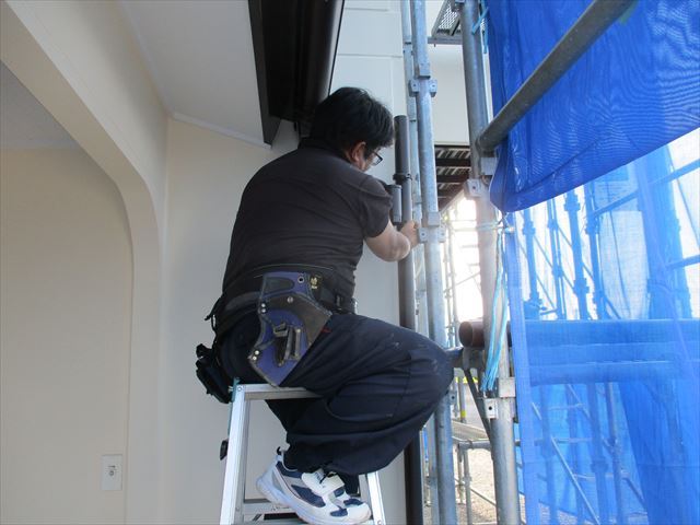 ベランダの床組みや手摺、雨戸の塗装作業が進められていきます。