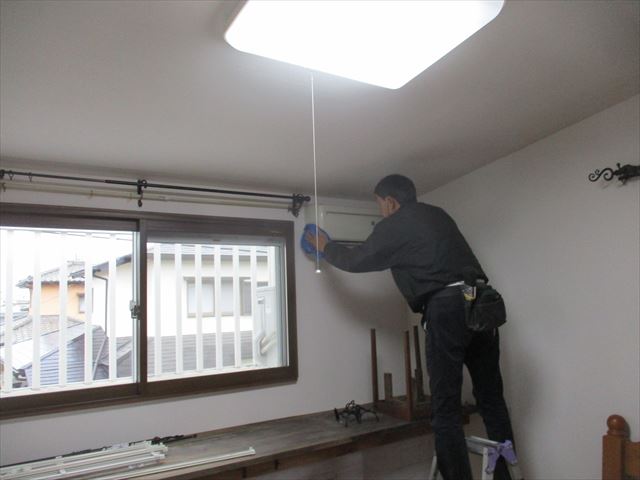 家具を移動しながら室内、家具、窓ガラス、搬入経路に至るまで丁寧に磨いていきます。