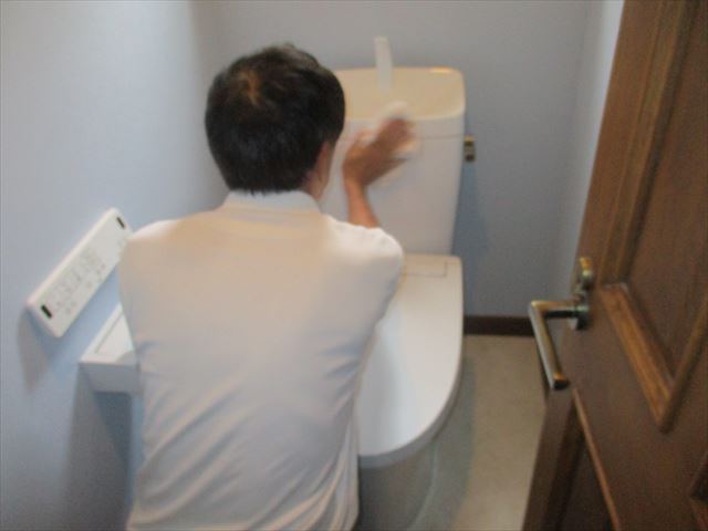 トイレ内から搬入経路まで丁寧に拭き上げていきます。
