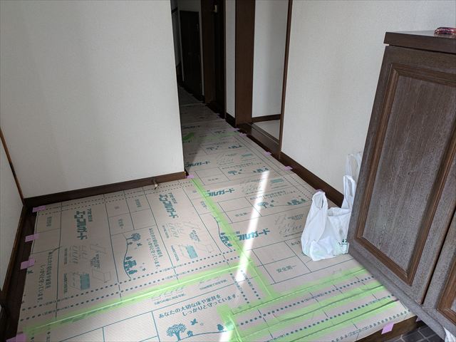 壁や天井にはクロスが張り替えられ、床にはクッションフロアが施工されます。