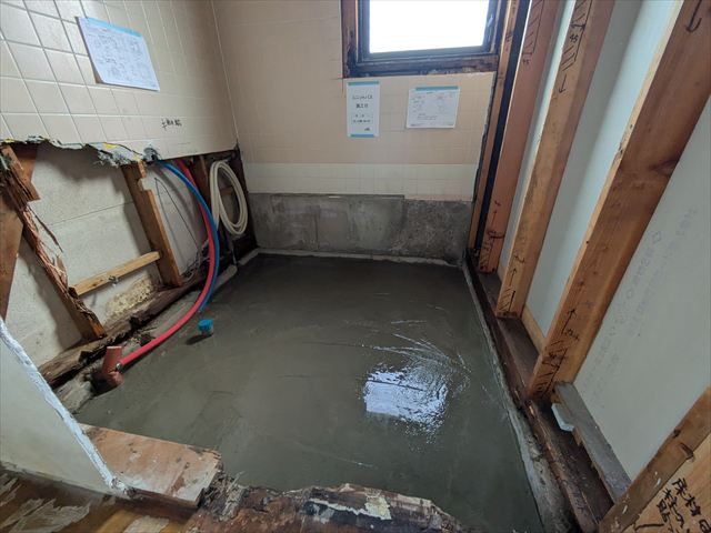 次に所定の高さまで土間コンクリートの打ち込みとなります。