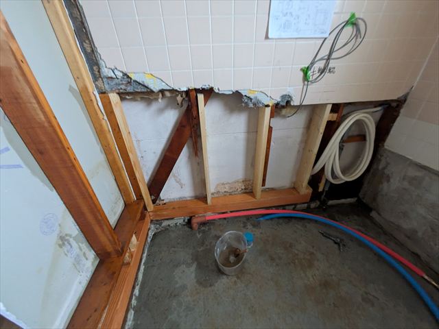 次に土台や間柱の入れ替えや補強を行って防蟻処理となります。