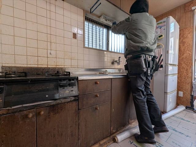 既存キッチンが撤去され、下地部分の解体も完了しました。