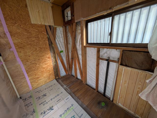今回は床にも段差が生じていましたので平坦になるように床下地も行っています。