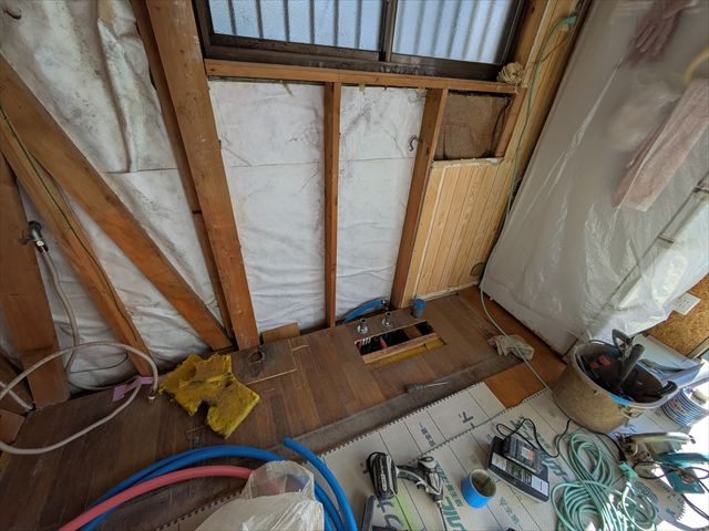 水道関連の配管や電気配線の分岐交換作業が進められていきます。
