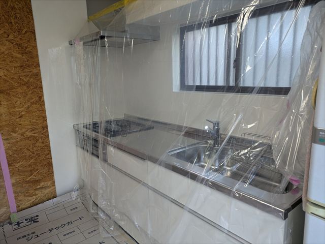 直ちに配線や配管の繋ぎとなりますのでビニール養生に留めておきます。